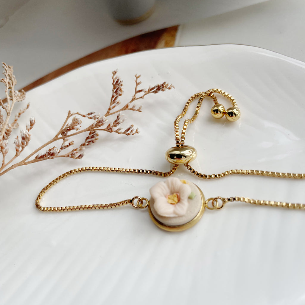 Translucent clays cured with natural dried rose petals and gold leaf for a little added...